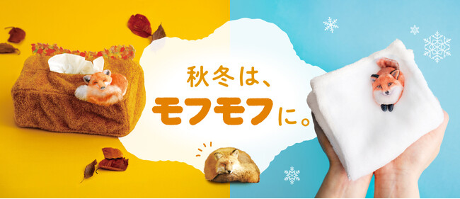 秋冬はキツネでモフモフ♪宮城蔵王キツネ村監修・四季に溶け込むキツネの姿を再現した“ボックスティッシュカバーとハンカチ”がフェリシモ「YOU+MORE!」から新登場