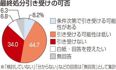 東京電力福島第1原発事故の除染で出た土壌の県外最終処分を巡り、福島民友新聞社と関谷直也東京大大学院教授が共同で行った全国自治体調査では、最終処分を引き受ける可能性について、回答した約8…
