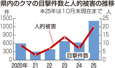 福島県のクマ目撃件数、1415件で過去最多 1~10月、前年同期の2倍に