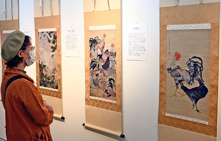 若冲の代表作「動植綵絵(さいえ)」などを、職人が伝統工芸「西陣美術織」を用いて緻密に再現した作品約50点を展示している。織元などでつくる西陣美術織・若冲全国巡回展実行委員会の岩崎圭祐さんは「細かな絵を繊細に表現する西陣織の技術を知ってほしい」と呼びかけている。時間は午前10時~午後5時(最終日は同4時)。入場無料。問い合わせは、実行委(電話075・548・7505)へ。