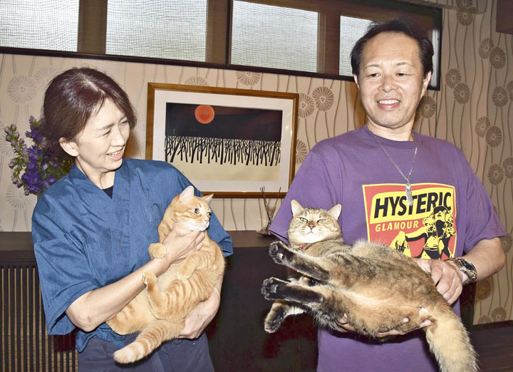 おきな旅館には現在、4匹の看板猫がいる。玄関口で宿泊客を出迎えたり、スリッパの上で眠ったり。5歳の「セイ」は、旅行情報誌「じゃらん」のアンケートで「会ってみたいと思う宿の看板ネコ」で1位に選ばれたこともある。宿泊客の8~9割はペット同伴で、看板猫に会いに来る宿泊客も多いという。