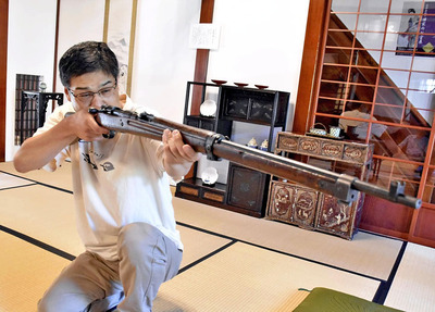 恒例の「小銃体験」も 恒例の小銃体験も催し、来場者の人気を集めている。日本陸軍が使用した九九式小銃と戊辰戦争で会津藩士が使用したゲベール銃を持つことができる。来場者は構えの姿勢で銃の重みを確かめていた。