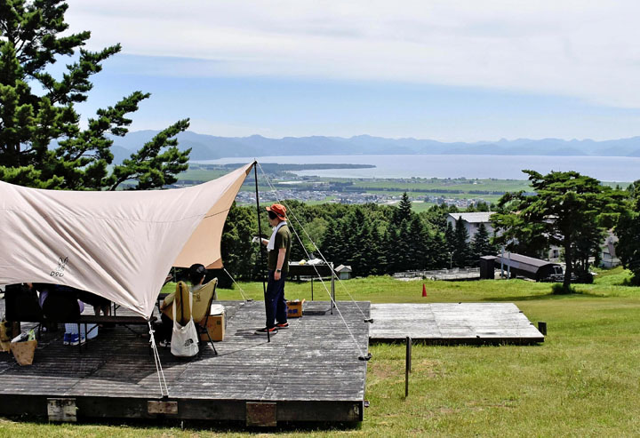 ゲレンデのバーベキュー場では、猪苗代湖などの絶景が楽しめる。バーベキューに必要なガスグリル、テーブル、皿などはテント内に用意されているため、手ぶらで来場可能。食材は専用サイトからの事前予約で購入できる。今季営業は11月3日まで。利用料は中学生以上2500円、小学生1500円。