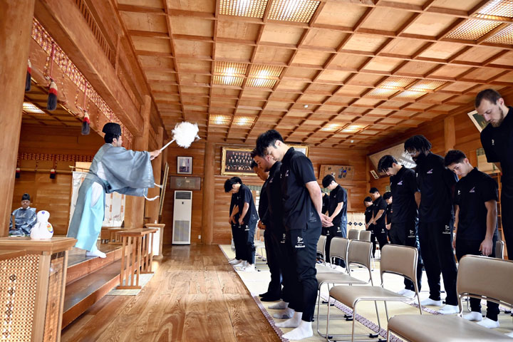 チームを運営する福島スポーツエンタテインメントの西田創社長やライアン・マルシャンヘッドコーチ、選手、スタッフら24人が参加。笠井康平主将らが玉串をささげ、シーズン中の勝利を祈願した。