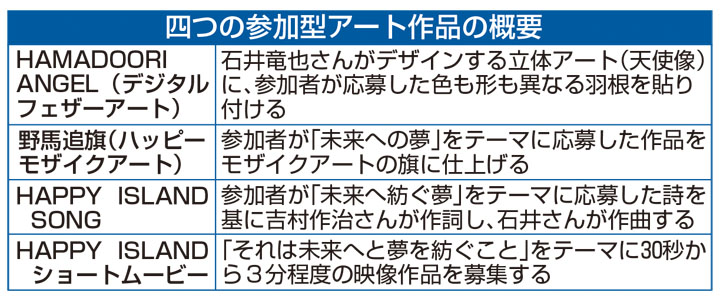 アーティストと地域住民らが創作に当たる参加型アートプロジェクト「Happy Island(ハッピーアイランド)浜通りアーツ2026」の実行委員会は1日、創作参加者を募るウェブサイトを開設し、事業を本格始動させた。同日、福島県いわき市で記者会見した実行委メンバーは県内外から2万人の参加を見込んでいることを明かし、芸術を通じた浜通りの活性化に向けて広く参加を呼びかけた。 「参加型であるということ...