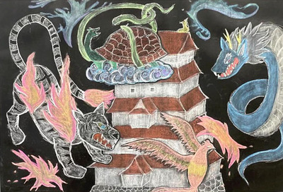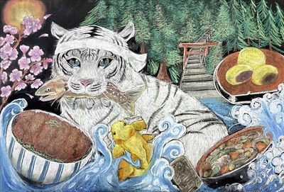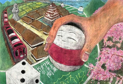 コンテストは「会津の自然や歴史、文化」がテーマ。縦68センチ、横1メートルの黒板シートにチョークを使って絵を描いた。市内の中学生と高校生が対象で33作品の応募があった。