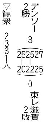 バレーボールSVリーグ女子のデンソーエアリービーズは12日、ホームの宝来屋ボンズアリーナで東レ滋賀を3―0で退け、開幕2試合連続のストレート勝ちを収めた。順位は14チーム中2位。デンソーは次戦の18日、アウェーのひたちなか市総合運動公園総合体育館(茨城県)でAstemoと対戦する。午後2時5分開始予定。