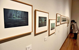 郡山市立美術館。11月9日まで。「天空の城ラピュタ」「火垂るの墓」「もののけ姫」など数々の名作アニメーション映画で美術監督を務め、2023年に死去した山本二三さんの作品や画業を紹介する展示会。初期から晩年までの手書きの背景画に加え、制作の過程で生み出される未公開の美術設定やイメージボード、制作用具など約220点を展示している。山本さんが手がけた「もののけ姫」の「シシ神の森」「時をかける少女」の「踏切」なども見ることができる。