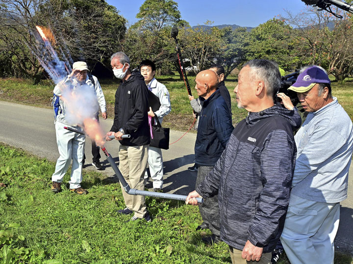 福島市で行われた緊急対策では、専門家が住民と共にクマが好む柿や栗の木がある場所を点検して伐採するべき木を選んだほか、クマを追い払うための花火の打ち上げ方を指導した。