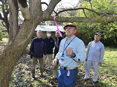 点検に参加した町内会長の男性(69)はクマの影響について「孫の通学路の安全確保ができず、毎日車で学校に送迎している。1人で草刈りもできない」とし、「専門家に伐採やごみ集積所についてアドバイスをもらった。町内会で取り組んでいきたい」と話した。