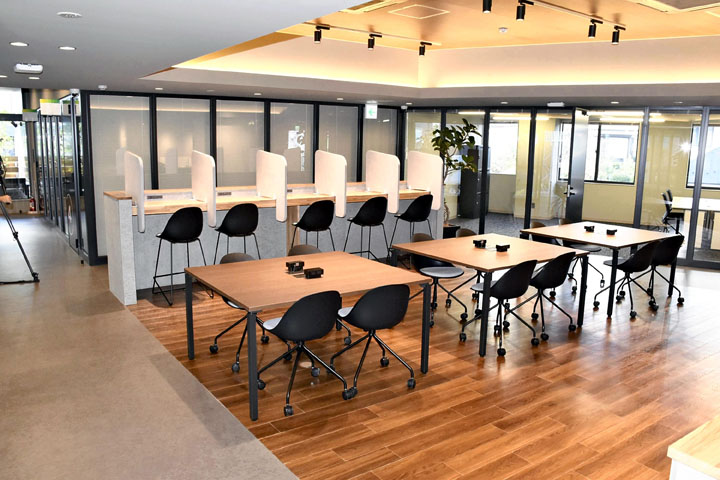 有料会員制のワークラウンジは落ち着いた空間で、快適さと機能性を兼ね備えた。基本料金は月額1万円から。
