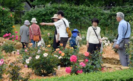 鳥取県南部町の県立フラワーパーク「とっとり花回廊」で約250種のバラ約千株が咲き始め、甘い香りを漂わせている。17日から6月1日まで「ばらまつり」が開かれ、バラ苗の即売やガイドによる案内などが行われる。