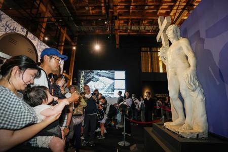 大阪・関西万博のイタリア館で18日、ルネサンス期の芸術家ミケランジェロの彫刻「キリストの復活」がお披露目された。10月13日の閉幕まで展示される。貴重な芸術作品が話題の同館で、新たな目玉になりそうだ。