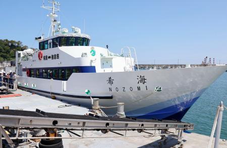 能登半島地震で大きな被害を受けた石川県輪島市の輪島港で28日、北約50キロ沖合の離島舳倉島をつなぐ定期旅客船「希海」の7月中の再開を目指し、接岸試験が実施された。舳倉島では島を拠点とした海女漁が盛んだが、震災以降休止している。航路再開は海女漁復興の後押しとなる。