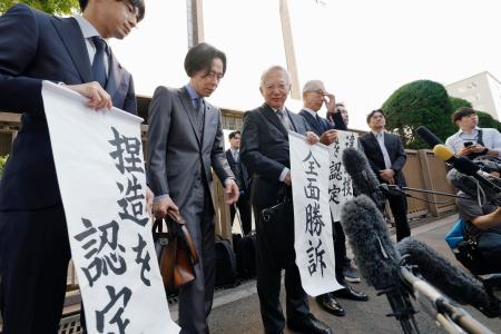 「全面勝訴」との垂れ幕が示されると、裁判所前の支援者らはわき上がり、大きな拍手の音が響き渡った。東京高裁は28日、一審に続き大川原化工機に対する捜査の違法性を認めた。自社で培った技術を悪用しているという捜査機関の見立てにあらがい続けてきた大川原正明社長(76)は「誇りを持ってやってきた仕事を裁判所が認めてくれた」と笑みを浮かべた。