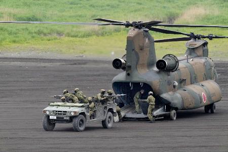 陸上自衛隊は8日、静岡県の東富士演習場で戦車や火砲を使った国内最大の実弾射撃演習「富士総合火力演習」を実施した。例年同様、離島での戦闘を想定し、敵の侵攻を食い止め、反撃するシナリオだ。