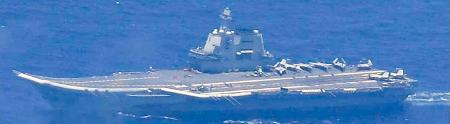 中国空母を巡っては、遼寧が7~8日、南鳥島の南西海域を航行。中国空母として初めて第2列島線を越えたことが確認されている。