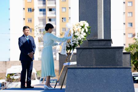 【カンポグランデ共同】ブラジルを公式訪問中の秋篠宮家の次女佳子さまは10日午前(日本時間10日深夜)、中西部カンポグランデにあるカンポグランデ日伯文化体育協会を訪れ、移民先駆者慰霊碑に供花された。歓迎式典で「先人が歩んだ険しい道のりに思いをはせるとともに、日系の皆さまの歴史を改めて心に刻む」とあいさつした。