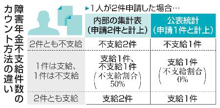 日本年金機構が毎年公表する障害年金の統計は、実際よりも不支給件数が少なくなる方法でカウントしていたことが11日、分かった。2023年度の不支給は機構内部の集計表では約2万件だったが、公表統計では約1万3千件で、約7千件少なかった。