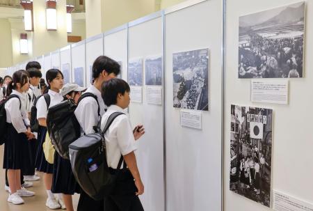 写真展は「戦争と平和」と題し、今年1月に東京で開催され、被爆地の広島に巡回した。被爆地の写真の他、戦前から戦後にかけ通信社や新聞社が撮影、収集してきた写真約100枚や新聞紙面が見られる。