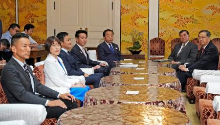 石破茂首相は12日、立憲民主党の野田佳彦代表ら与野党党首と国会内で会談し、トランプ米政権との関税交渉を巡り、日米間で相当な隔たりがあるとした上で「自動車のために農産物を譲るようなことはない」と言明した。終了後、官邸で記者団の取材に応じ「早期合意を優先するあまり、日本の国益を損なうことはない」と強調した。