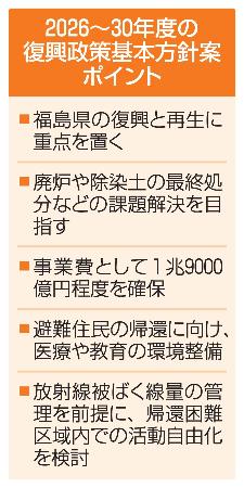 政府は13日、東日本大震災の復興推進委員会(委員長・今村文彦東北大教授)を開き、2026~30年度の復興政策の基本方針案を示した。福島県の復興と再生に重点を置き「国としてあらゆる力を結集し、総力で実行していく」と強調。東京電力福島第1原発事故に伴う廃炉や除染土の最終処分といった課題の解決を目指す。月内に閣議決定する方針。