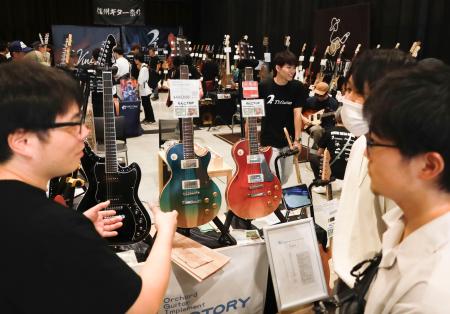 ギターの出荷額が全国でトップを誇るなど愛好家の間で「聖地」として知られる長野県で28日、県内のメーカーが一斉に展示や販売を行う「信州ギター祭り2025」が開かれた。会場となった松本市の施設に、11社が手がけたギターやベース計300本超が並び、多くの愛好家が集結。試奏する音色が響いた。