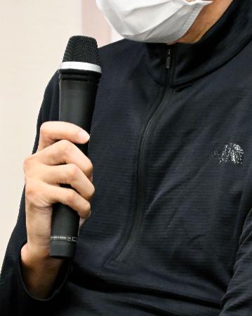 閉廷後、記者会見する原告の男性=29日午後、新潟市