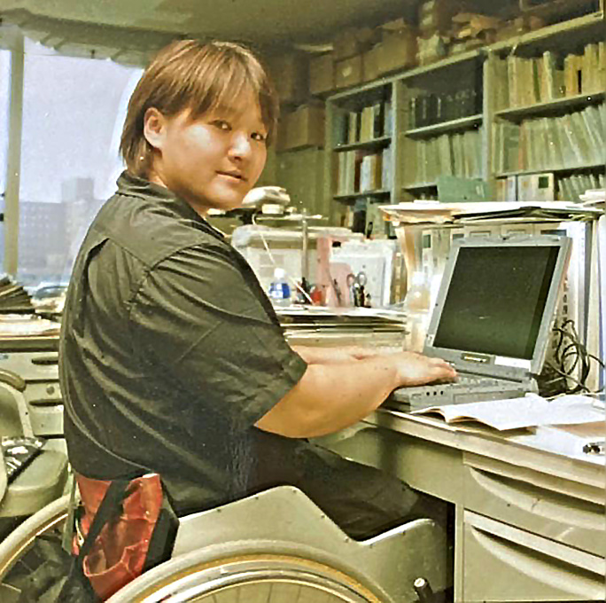 1996(平成8)年、競技と並行して県身体障害者スポーツ協会(現県障がい者スポーツ協会)で働き始めた。 県内外から仕事の誘いを受けていた。協会はその中でも通勤に車で片道1時間半かかり雇用条件も一番良くなかった。それでもここで働こうと思ったのには、理由が二つあった。 一つは、一人でも多くの人に障害者スポーツを普及したいと思ったことだった。94年に中国で開催されたフェスピック北京(現アジアパラ)開会...