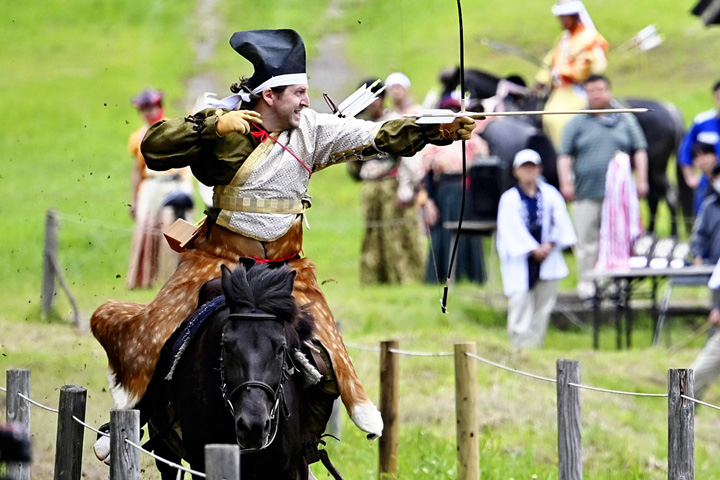 居合道や杖道(じょうどう)、剣道、弓道などさまざまな武道に挑戦してきた私だが、約15年前から始めた流鏑馬(やぶさめ)にも夢中になっている。疾走する馬に乗って的に向かって矢を放ち、人馬一体となって心と体を鍛え上げるのが流鏑馬だ。 弓道の鍛錬を重ね、和弓の扱いに慣れてきた頃、流鏑馬のことを知った。棚倉町から近い古殿町で流鏑馬を見学できると知り、行ってみた。馬の迫力と、馬の上からでも正確に的中させる射...