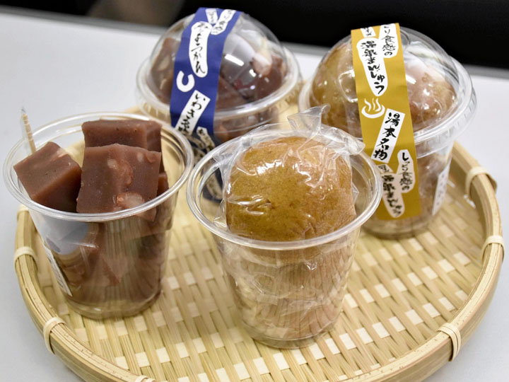 いわき市の「和菓子の久つみ」は人気商品の「馬方ようかん」と「温泉まんじゅう」を食べやすいサイズにし、カップに詰めた新商品の販売を始めた。