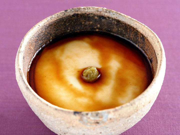 1人分144キロカロリー、塩分1.0グラム (1)2人分で無調整豆乳100cc、片栗粉大さじ1、A(白練りごま30グラム、砂糖小さじ1、しょうゆ小さじ1/4)、だししょうゆ小さじ2、ゆずこしょう小さじ1/2を用意します。 (2)ボウルにAを入れてよくまぜます。鍋に片栗粉を入れ、水100ccを加えて溶きのばし、無調整豆乳を加えます。Aのボウルに少しずつ加えて溶きのばし、鍋に移します。 (3)鍋...