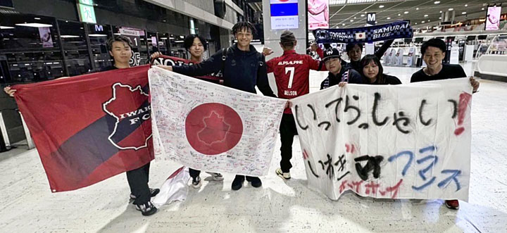 U―20(20歳以下)日本代表に選ばれたMF石渡ネルソン選手を応援しようと、サポーターでつくる応援団体「リノラいわき」は熊本戦が行われた1日にスタジアムでメッセージを募った。多くのサポーターが協力し、国旗は「世界で輝け!」など温かい言葉でぎっしり。試合後、リノラいわきのメンバーは成田空港に直行し、石渡選手に直接メッセージ入りの国旗を届け「いわき愛」にあふれる行動で盛大に送り出した。応援を先導...