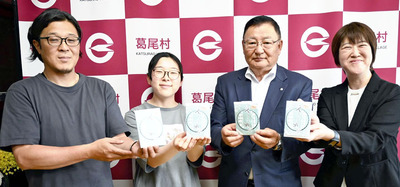 13日に村役場で開かれた完成報告会には郡司准教授、影山さん、吉田さんが出席し、篠木弘村長に完成を報告した。