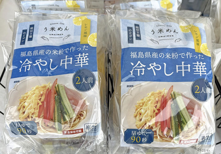 天栄村で電子機器製造・組み立てなどを手がけるアルファ電子は、自社で製造する小麦粉を使わないグルテンフリーの麺「う米(まい)めん」シリーズとして冷やし中華の販売を始め、人気を集めている。