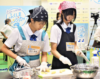 バナナ部門には県勢で唯一、磐城一高1年で食物部で活動する野舘唯花さん(15)、鈴木葵晴(きはる)さん(15)が出場し、タルトケーキを作った。最優秀賞は逃したが、2人は「福島の魅力発信の思いを込め、全力を尽くして調理できた。今回の経験を生かしたい」と語った。