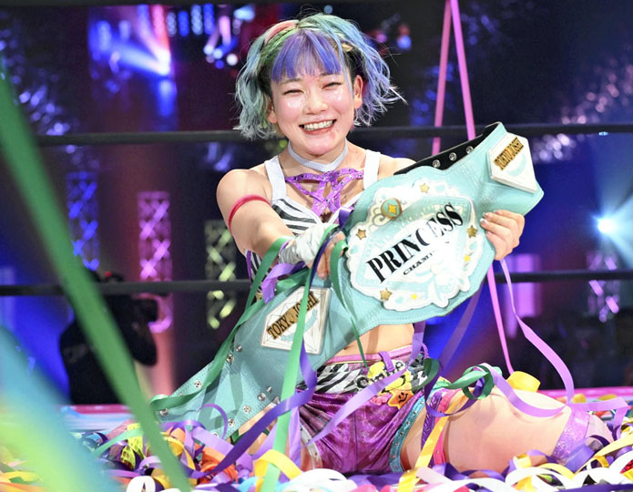 プロレス団体「東京女子プロレス」に所属する会津若松市出身のプロレスラー・タレント遠藤有栖選手(27)は、東京・大田区総合体育館で9月20日に行われたタイトルマッチに挑み、初のシングルベルトを手にした。「初めて一人で手に入れたベルト。自分も大きくなって、このベルトを遠藤有栖の色にしたい」と喜びを爆発させた。