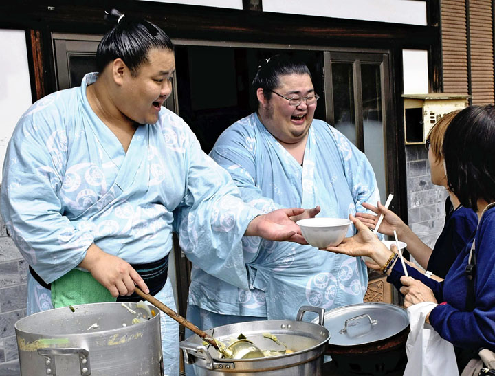 3人は来場者へちゃんこを手渡したり、ファンとの記念撮影に気軽に応じるなどして交流を図った。相撲グッズの販売なども繰り広げられた。