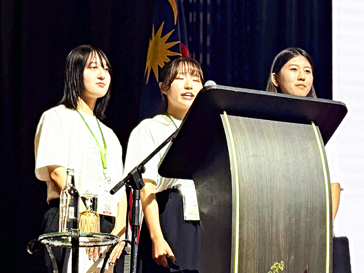 福島県の脱炭素の取り組みを海外に発信する「ふくしまカーボンニュートラルアンバサダー」を務める福島大の4年生3人が16日、派遣先のマレーシアで参加している「日本・マレーシア環境ウィーク」の会議で登壇し、本県の復興や温室効果ガス排出量実質ゼロ実現に向けた取り組みについて英語で発表した。 派遣されているのは小島彩也乃さん、塩田優莉さん、仁野平未来さん。3人は「一歩を踏み出す、その積み重ねが気候変動とい...