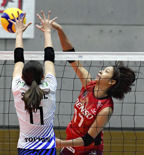 【評】デンソーは守備のミスや相手の激しい攻撃に苦しんだ。第1、2セットは蓑輪やロザマリアを中心に攻撃を仕掛け、一進一退の攻防を繰り広げたが、レシーブミスなどで連続得点を許し、突き放された。第3セットは連係の精度に欠け、点を取りきれなかった。