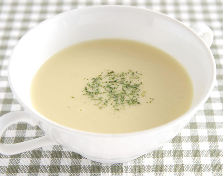 1人分154キロカロリー、塩分1.4グラム (1)2人分で玉ネギ50グラム、バター10グラム、薄力粉大さじ1、顆粒(かりゅう)コンソメ小さじ1/2、コーンクリーム缶150グラム、ローリエ1/2枚、牛乳100cc、乾燥パセリ少々を用意します。 (2)玉ネギは繊維に逆らった薄切りにします。 (3)鍋にバターを溶かし、玉ネギを焦がさないように炒めます。薄力粉を入れ、粉っぽさがなくなるまで炒めます。...
