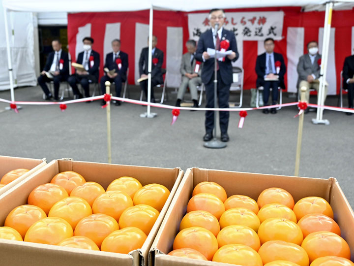 会津みしらず柿販路拡大促進協議会は7日、会津美里町のJA会津よつば永井野選果場で、海外に輸出する会津身不知(みしらず)柿の発送式を行った。海外輸出は2008年度にタイ、香港向けで始まり、今回、初めて台湾を輸出先に加えた。