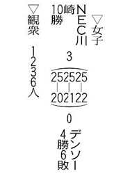 デンソーは前日のフルセットゲームから一転、痛恨のストレート負けで首位のNEC川崎に無傷の10連勝目を献上した。ミドルブロッカーの麻野七奈未は「どんな状況でも打ち切ってくる相手を前に、自分たちのバレーができなかった」と振り返った。