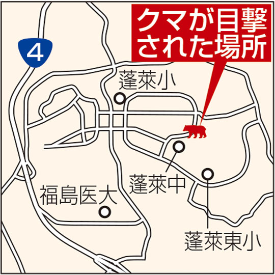 13日午後2時ごろ、福島県福島市蓬莱町5丁目の市道で、「登校中の生徒がクマを目撃した」と蓬莱中の教員から福島署に通報があった。