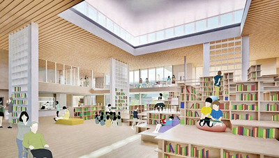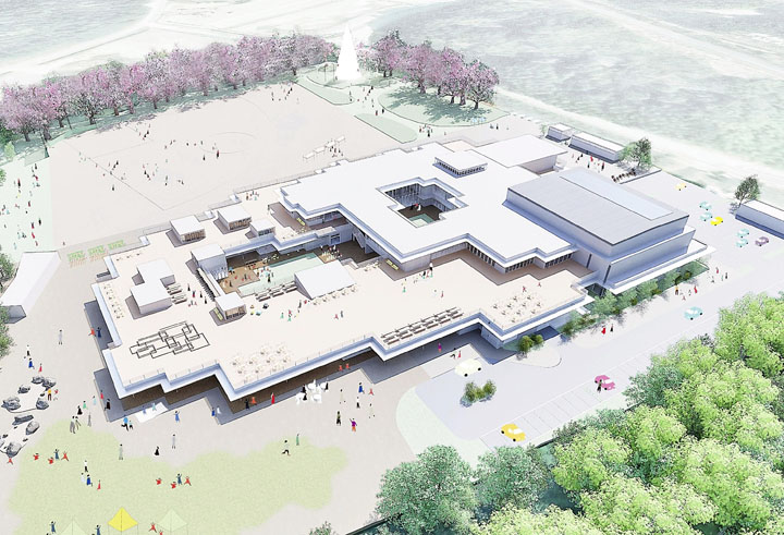 双葉町教委は21日、2028年4月に町内に開校予定の新学校の基本設計を公開した。日常的に地域住民が施設の一部を利用することを想定し、校舎の中央に「中庭」を設けて異なる年齢の子どもたちや住民が交流し、学習できる場を整備。教室空間には可動間仕切りを設け、授業内容や習熟度に合わせて自由に学習環境を変えられるようにする。26年10月の着工、28年1月の完成を目指す。