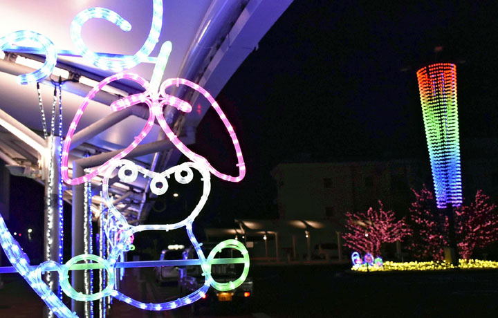 同組合が同市のにぎわい創出のため、毎年開催。イルミネーションは、みずいろ公園、JR本宮駅の東口広場や、中心市街地の商店街通りなどで行われている。設置時期はみずいろ公園が来年1月18日まで、ほかの場所は来年2月15日まで。時間は午後5時~同9時。