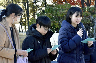 続いて、手紙を書いた人たちが当時の思いなどを発表。郡山市の小橋千春さんは手紙に「大好きなママと言ってもらえるような母親であり続けたい」と書いたことを明かし「これからもそんな母親でありたい」と思いを語った。小橋さんの長女莉恵さん、長男拓真さんも一緒に発表した。