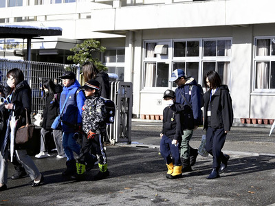 森合小は4日、午後の授業を取りやめ、保護者に児童の送迎を依頼するメールを送信した。昇降口は子どもたちを引き取るため、大勢の保護者が訪れた。5年生と2年生の子ども2人を迎えに来た40代女性は「学校近くでの目撃にとても驚いた」と目を丸くした。