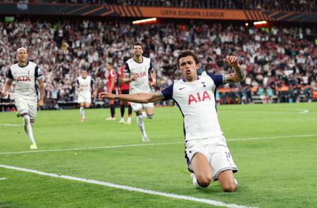 【ビルバオ(スペイン)共同】サッカーの欧州リーグは21日、スペインのビルバオで決勝が行われ、トットナムがマンチェスター・ユナイテッドとのイングランド勢対決を1―0で制し、前身の欧州連盟(UEFA)カップを制した1983~84年シーズン以来3度目の優勝を果たした。