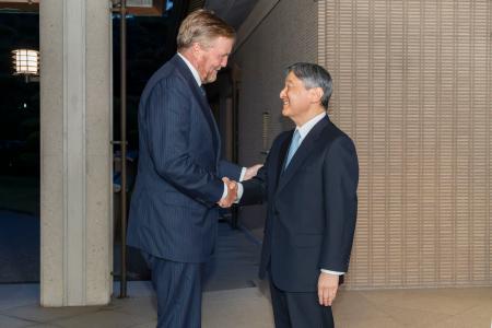 天皇、皇后両陛下は22日、オランダのウィレムアレクサンダー国王を皇居・御所に招き、夕食を共にされた。国王は大阪・関西万博のナショナルデーに合わせて来日した。